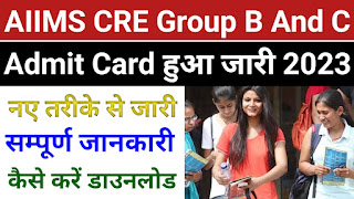 AIIMS CRE group B and C admit card release 2023:AIIMS CRE ग्रुप बी और ग्रुप सी एडमिट कार्ड हुआ जारी 2023